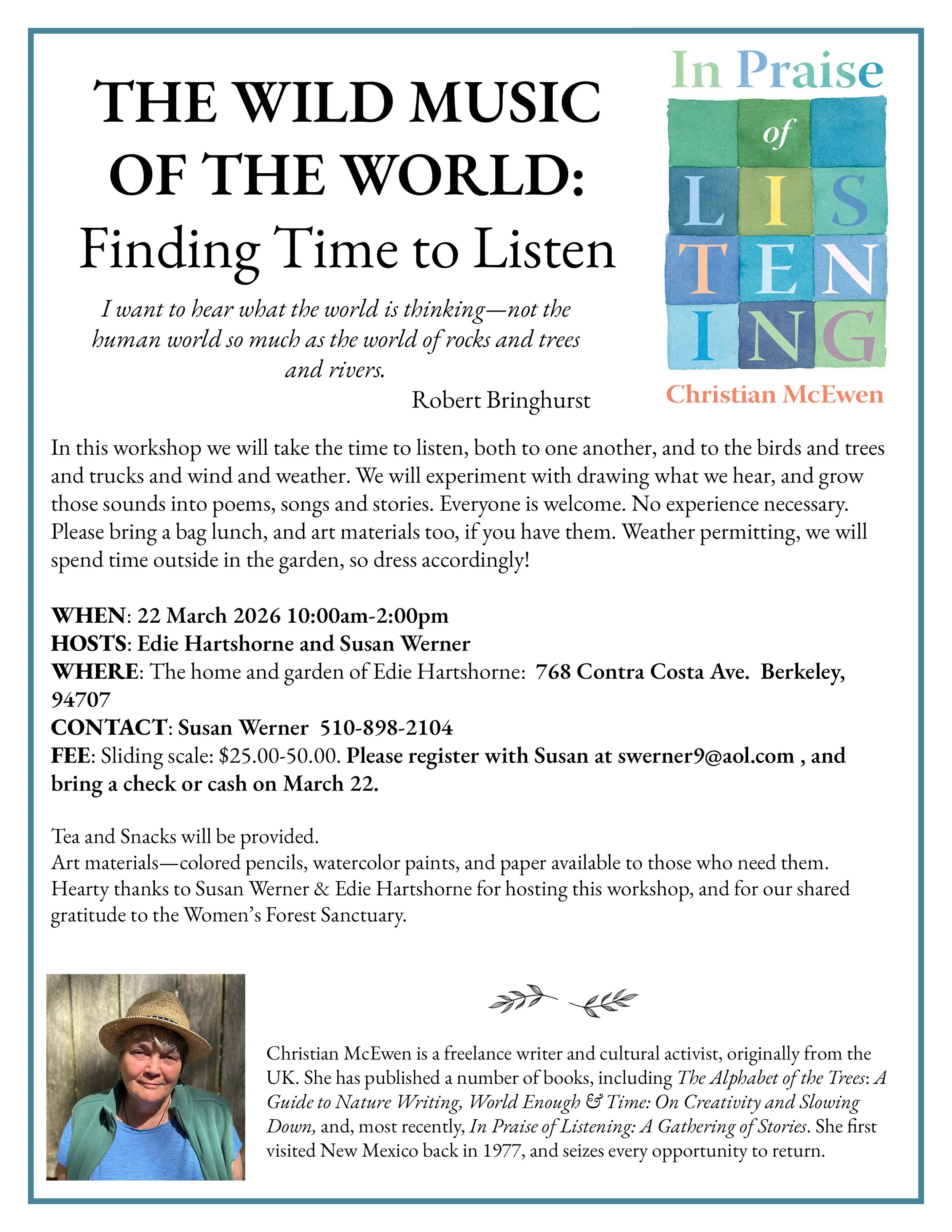 Christian McEwen is a writer & cultural activist from the UK, now based in western MA. Buy her books, sign up for classes and workshops, and find news of what Christian is working on here.